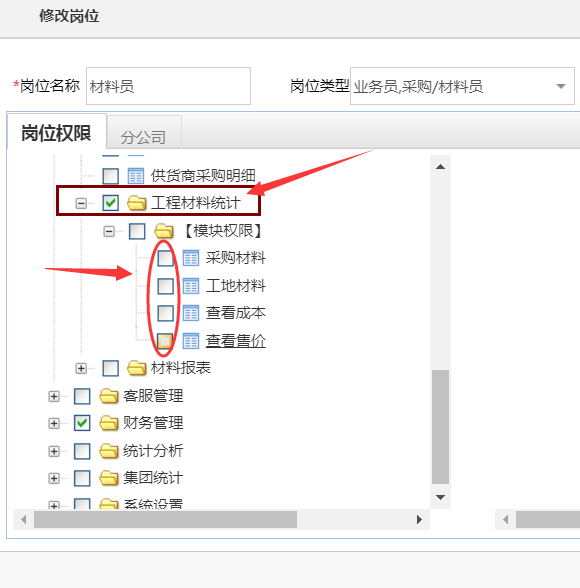 工程材料清單將客戶的采購清單和工地用料清單都統(tǒng)計在內(nèi),采購材料、工地材料、成本價、銷售價均可自定義決定是否開通給相應(yīng)的崗位,這樣給決策者對于價格的保密性增加了更多的選擇空間,具體操作如下所示