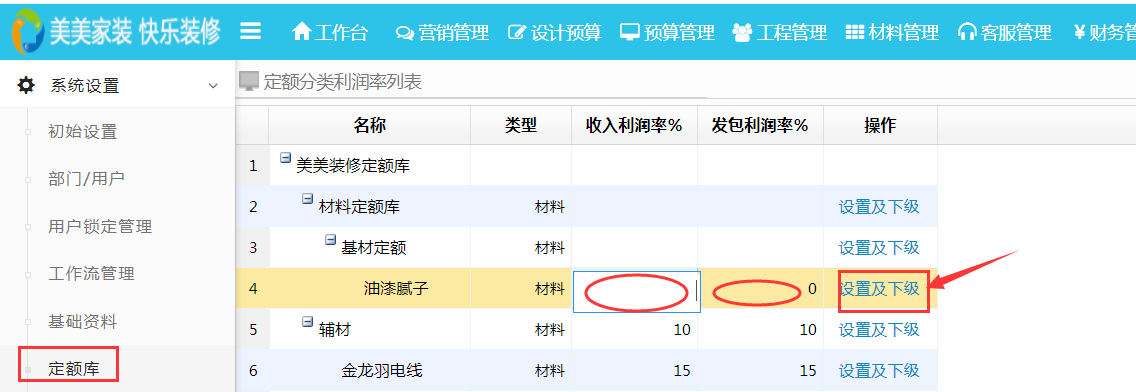 咱們可直接通過系統(tǒng)完成一系列的操作,無須浪費(fèi)時間通知每位設(shè)計師價格的變動信息。最新上線的定額分類利潤操作是怎么一回事呢?使用美佳ERP,在系統(tǒng)設(shè)置中就可直接采用定額分類利潤率來批量設(shè)置材料的利潤。這樣咱們設(shè)計師在做預(yù)算的時候可直接按定額新設(shè)置的價格給客戶報價,統(tǒng)一管理不亂套。