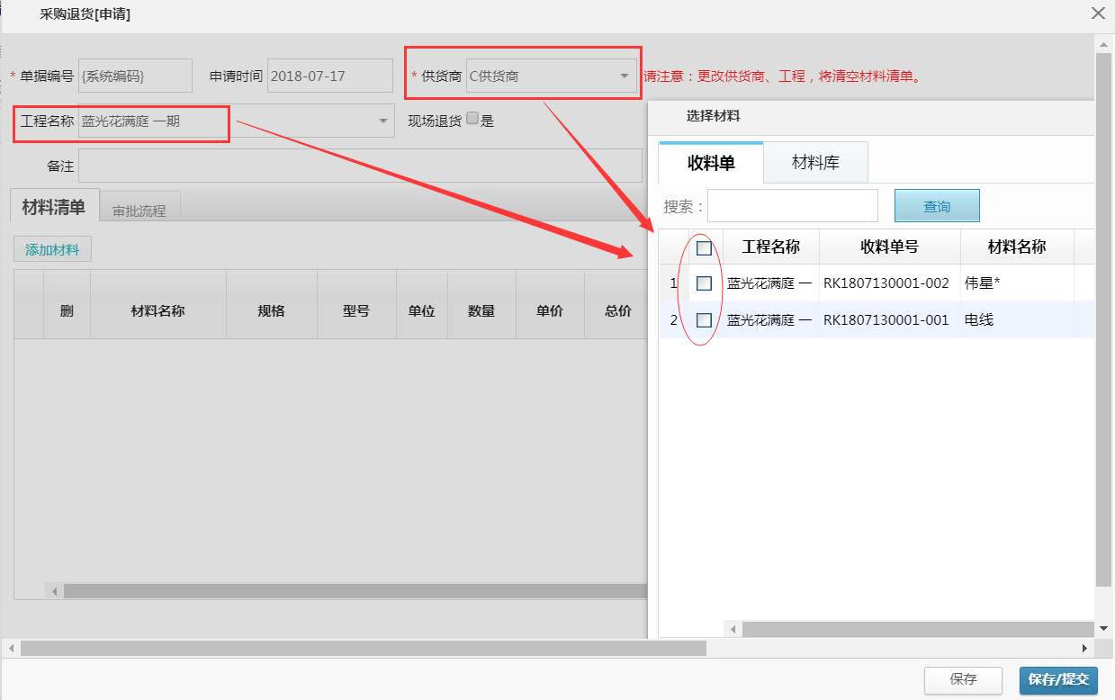 當(dāng)我們在材料退貨和倉庫退貨時,是否會遇到眾多材料中哪個材料才是此工程需要退回的呢?為了給大家完美的解決關(guān)于退貨選材料的的事情,美佳技術(shù)人員針對材料退貨做了如下優(yōu)化,還在等什么,快來一睹為快吧!