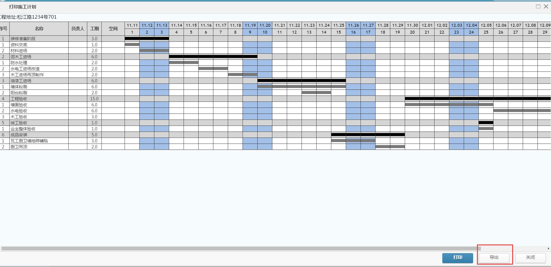 施工進(jìn)度計(jì)劃,裝修平臺(tái)在之前打印施工進(jìn)度計(jì)劃的功能之上新增:施工計(jì)劃導(dǎo)出到excel表格。該功能的上線,有利于工程部調(diào)整施工計(jì)劃打印及本地存檔。