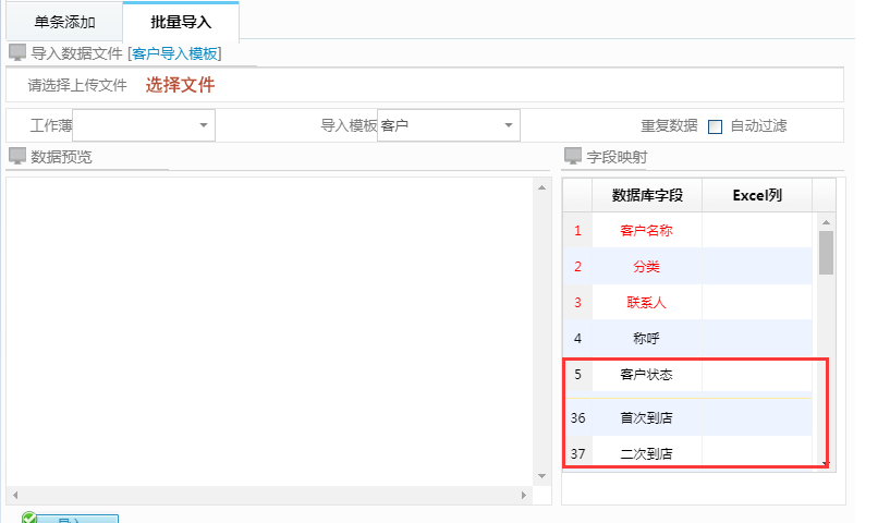 批量添加客戶新增客戶狀態(tài)、首次到店、二次到店: