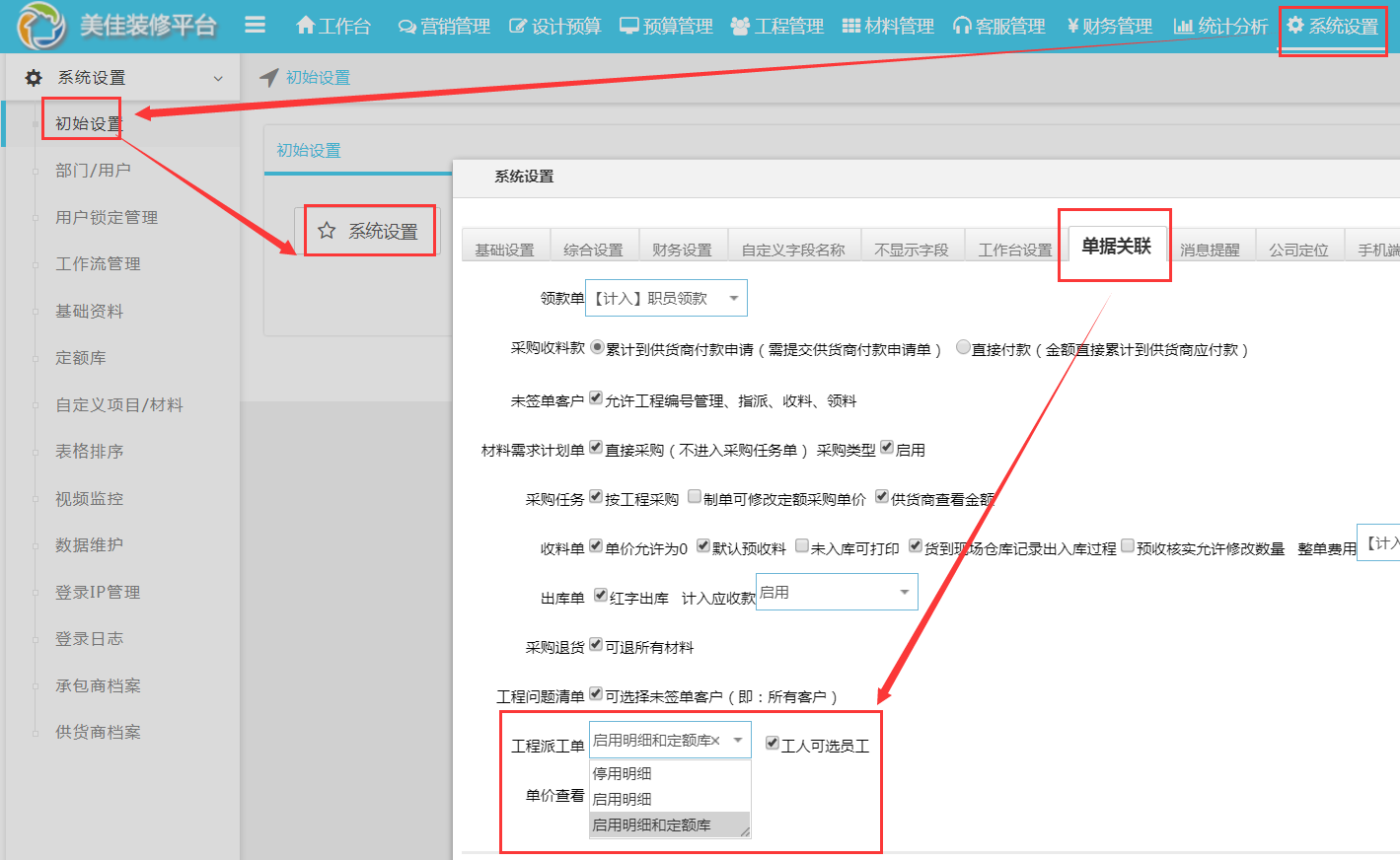 第一步:首先在系統(tǒng)設(shè)置中將工程指派單相關(guān)功能啟用