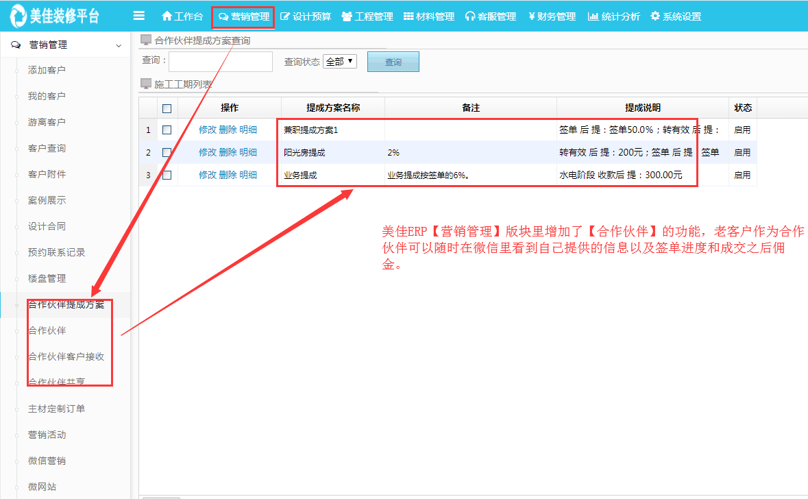 客戶(hù)帶客戶(hù)是既省時(shí)間簽單成功率又高的銷(xiāo)售途徑。想要回單就要把老客戶(hù)轉(zhuǎn)化為我們的合作伙伴。美佳云裝通過(guò)掃描二維碼對(duì)接微信是透明便捷的合作平臺(tái),大大的促進(jìn)客戶(hù)作為合作伙伴來(lái)向我們提供信息,與老客戶(hù)保持了粘度;也很大程度上杜絕合作伙伴的后顧之憂,比如把信息介紹給我們有沒(méi)有簽單成交,簽單金額是多少,自己能拿到多少傭金等等。