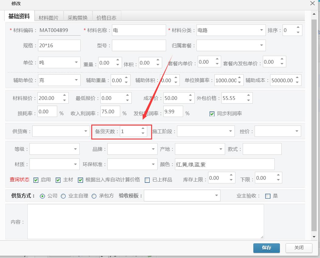 注意【滿足前提條件:定額庫中將材料的備貨天數(shù)完善】