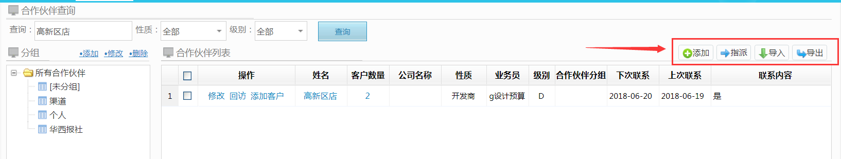 b、增加合作伙伴導(dǎo)入、導(dǎo)出、指派功能;